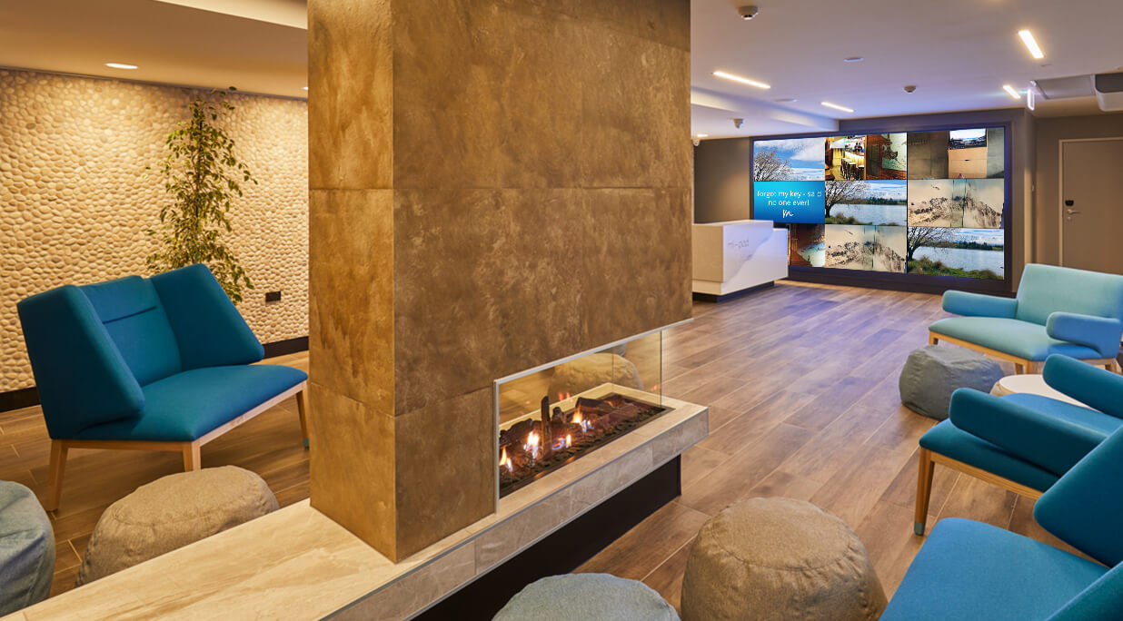 social media interaction—all while maintaining a sleek, modern lobby aesthetic.