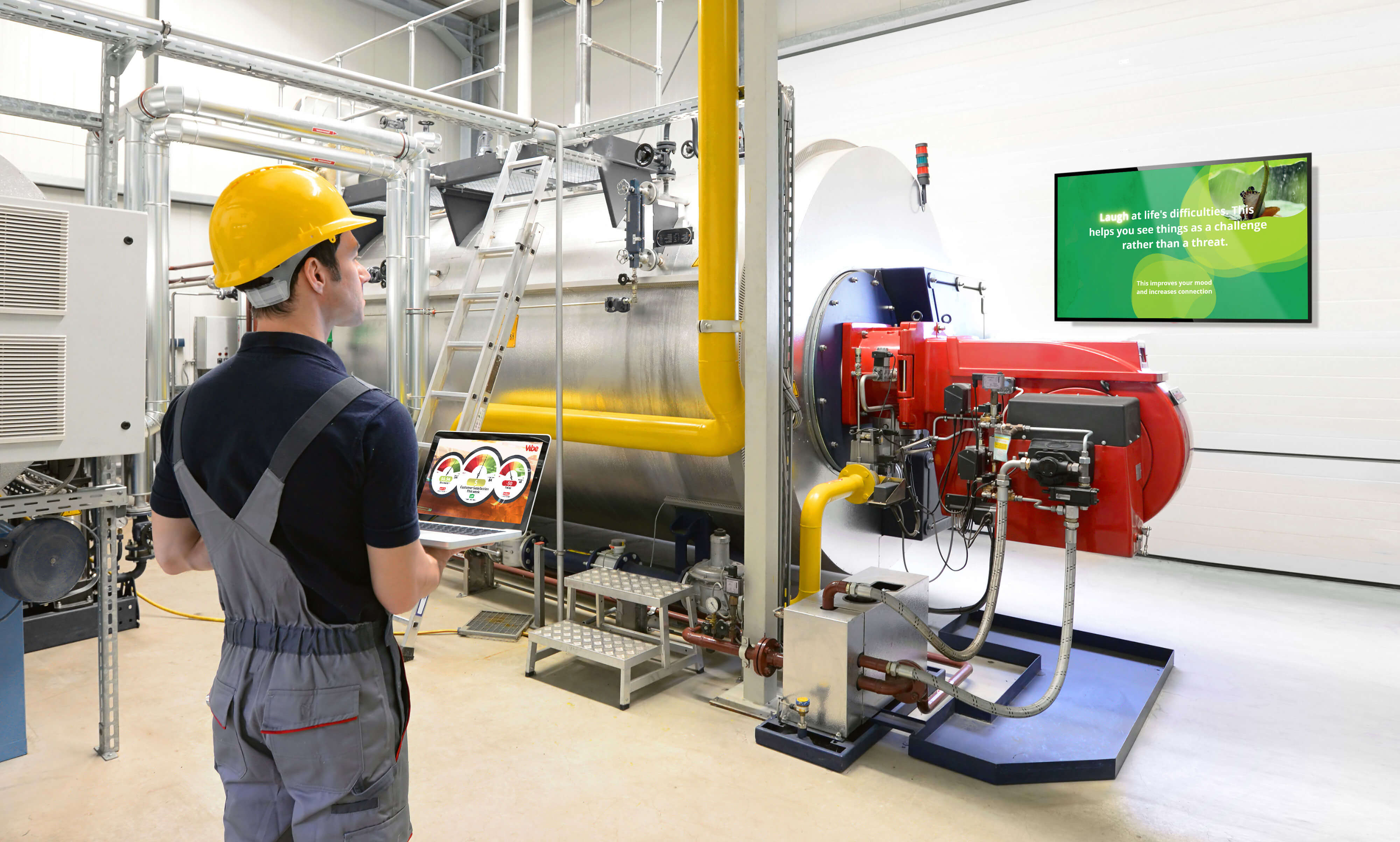 Vibe brings together digital signage screens, screensavers, web browser and mobile to reach all of your people, whether they’re at home, at their desks, on the road or the factory floor.