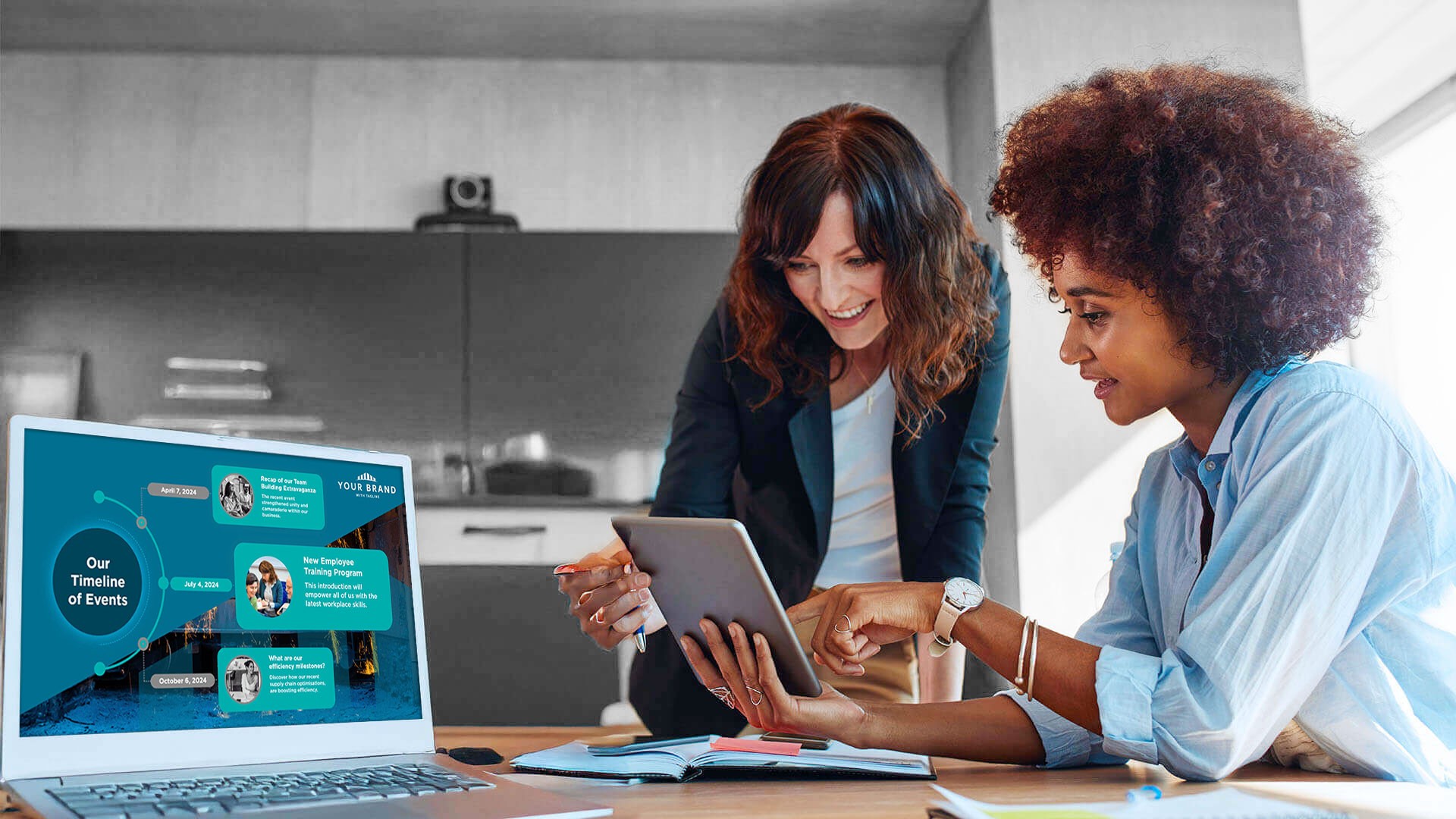 • Background Wallpapers – Subtle but persistent branding and culture reinforcement without disrupting workflow.