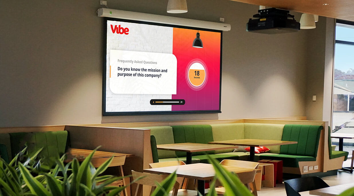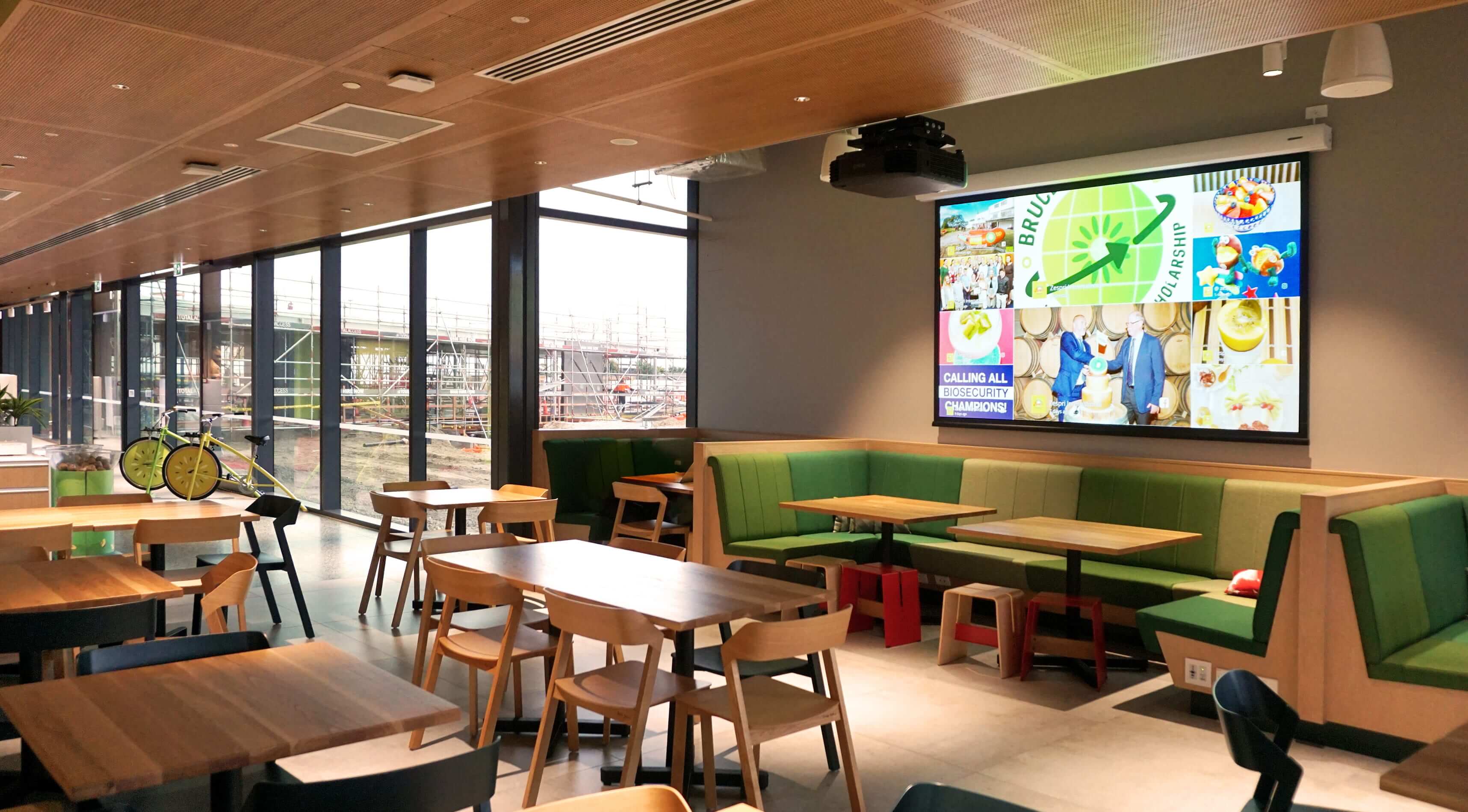 Vibe.fyi has made it easy to communicate quickly and effectively throughout the new office using large-format screens that feature lively and engaging content. At Zespri, people are a top priority so a lot of the messaging focuses on new staff, staff farewells, celebrating wins, reflecting on the world-wide team and a social media mashup.